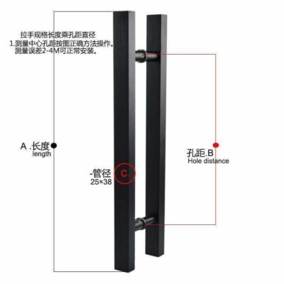Nhà máy sản xuất trực tiếp cửa kính tay cầm bằng thép không gỉ ống vuông sơn cửa trượt màu đen Tay nắm cửa khách sạn tay cầm kéo đẩy