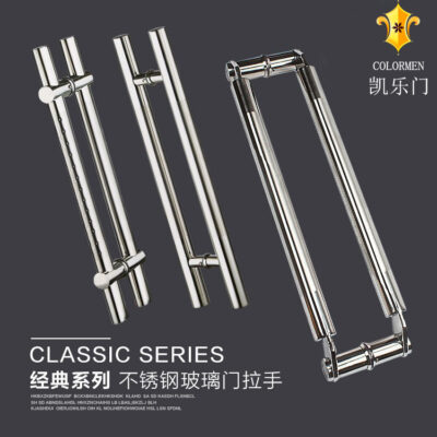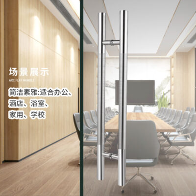 Nhà máy trực tiếp cung cấp cửa kính chữ O tay nắm inox 304 dày cong công ty khách sạn Tay nắm cửa kéo đẩy