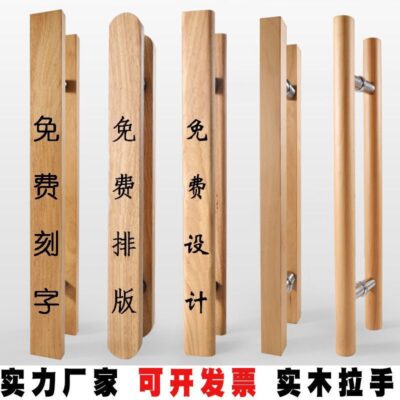 Tay nắm cửa kính LOGO tay cầm bằng gỗ chạm khắc chữ cửa khách sạn Tay nắm cửa bằng gỗ tối giản hiện đại tay cầm bằng gỗ