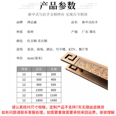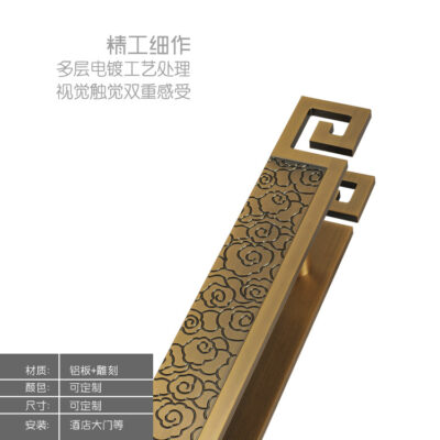 Nhà máy cung cấp trực tiếp cao cấp Tay nắm cửa hợp kim nhôm chạm khắc kiểu Trung Quốc mới, Tay nắm cửa kính khách sạn, logo tùy chỉnh miễn phí