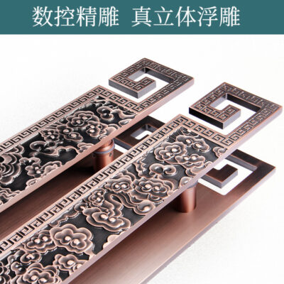 Đồng mới của Trung Quốc Tay nắm cửa cổ Xiangyun cửa gỗ đẩy và kéo cửa khách sạn Tay nắm cửa kính chạm khắc màu đỏ và xanh lá cây