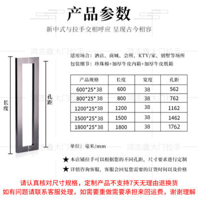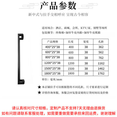 Tay nắm dài Tay nắm cửa khách sạn Cửa hàng KTV cửa hàng Tay nắm cửa bằng gỗ phong cách Trung Hoa dày đóng khung Tay nắm cửa kính