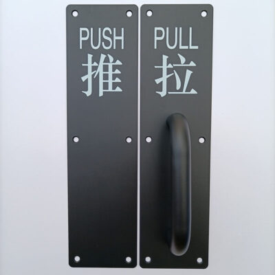 Bán buôn thép không gỉ chà nhám chữ tấm kéo đẩy tiếp xúc tay cầm cửa kênh Tay nắm cửa chống cháy tấm kéo đẩy