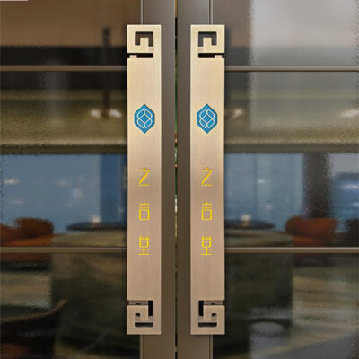 Bán buôn phong cách Trung Quốc đóng khung cửa kính tay cầm logo chữ phòng khách sạn văn phòng cửa gỗ cổ tay cầm bằng đồng