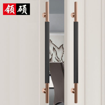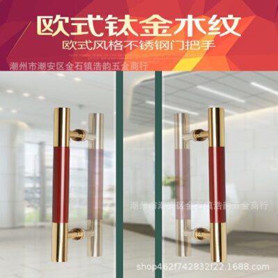 Tay nắm cửa kính khách sạn phong cách Châu Âu KTV hiện đại cặp tay nắm bằng gỗ nguyên khối màu đen và trắng titan vàng điểm thép không gỉ