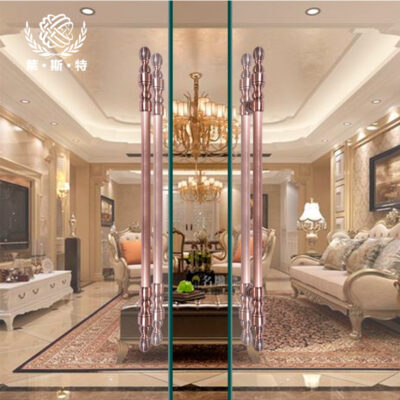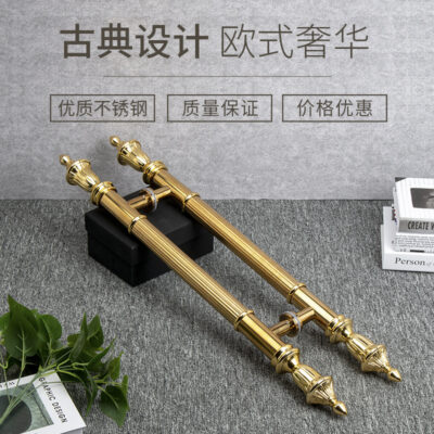 Tay nắm cửa kính biệt thự phong cách châu Âu khách sạn cổ Tay nắm cửa vàng hồng titan tay nắm vàng bán buôn Tay nắm cửa
