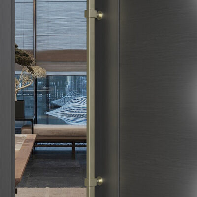 Bán buôn nhẹ sang trọng cực hẹp vàng kính Tay nắm cửa bằng thép không gỉ dày Tay nắm cửa bằng gỗ khách sạn câu lạc bộ cao cấp cửa trượt