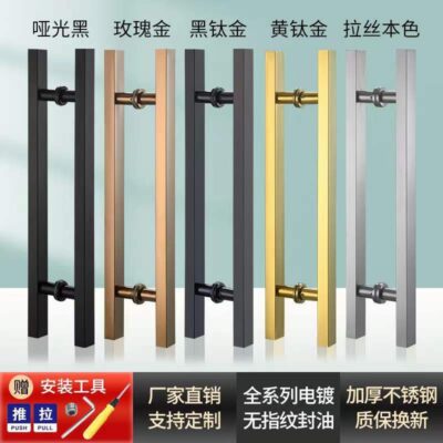 Tay nắm cửa kính Tay nắm cửa inox khách sạn KTV cửa gỗ cửa trượt ống vuông tay cầm lớn màu đen nhà máy tại chỗ