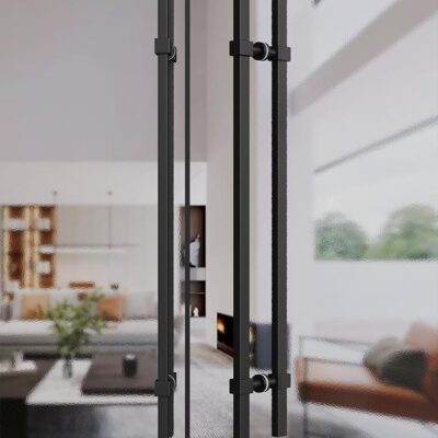 Bán buôn Tay nắm cửa kính tối giản hiện đại hộp khách sạn văn phòng bằng gỗ nguyên khối với Tay nắm cửa trượt màu đen