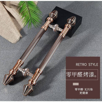 Tay nắm cửa kính khách sạn thép không gỉ hợp kim nhôm Mỹ mạ đồng đen biệt thự Tay nắm cửa phong cách retro