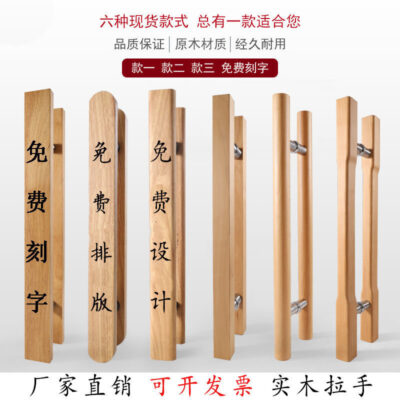 Tay cầm gỗ chắc chắn Tay nắm cửa kính Trung Quốc khắc cửa hàng khách sạn đăng nhập LOGO lớn khắc một mảnh Bán buôn