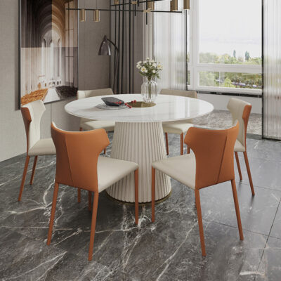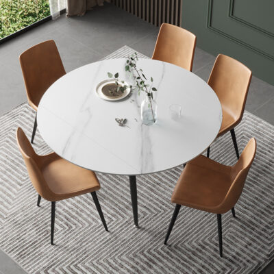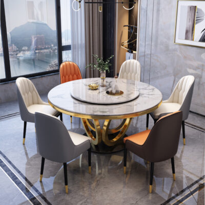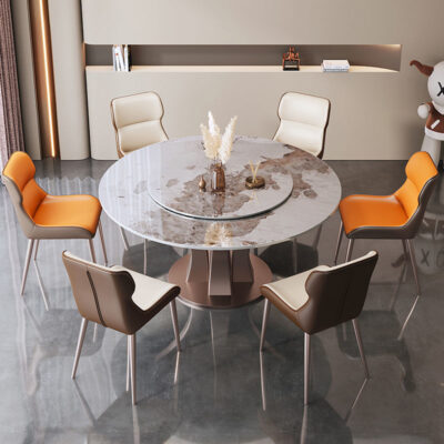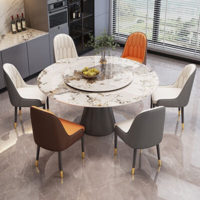 Bàn ăn bằng đá phiến sang trọng nhẹ nhàng, hiện đại, đơn giản, bàn ăn tròn sáng sủa, phong cách Ý, kết hợp bàn ăn và ghế xoay