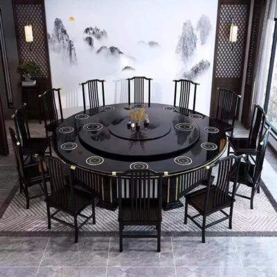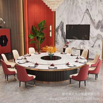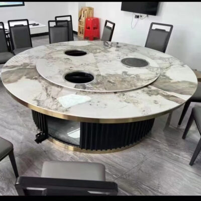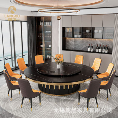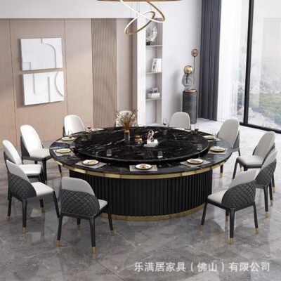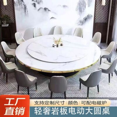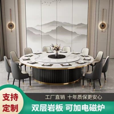 Bàn ăn xoay tự động tròn bàn lớn khách sạn 10 người 15 khách sạn câu lạc bộ đẹp sang trọng bếp từ cảm ứng bàn Lẩu đá tấm bàn tròn lớn