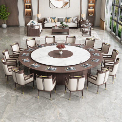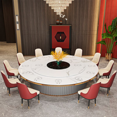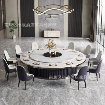 Bàn ăn khách sạn đơn giản hiện đại xoay tự động bàn tròn lớn đá cẩm thạch 20 người bàn khách sạn phục vụ ăn uống thương mại