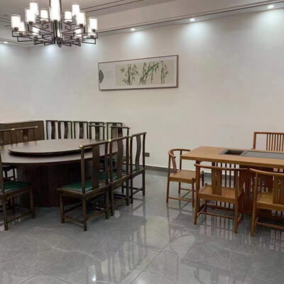 Kết hợp bàn ghế ăn đá phiến kiểu Trung Quốc mới Zen light nhà sang trọng khách sạn bàn ăn gỗ nguyên khối 10 người bàn tròn lớn có bàn xoay