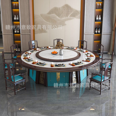 Khách sạn kiểu Trung Quốc mới bàn ăn xoay tự động gỗ nguyên khối bàn tròn lớn bàn khách sạn câu lạc bộ bàn ăn phiến đá internet nhà thiết kế nổi tiếng