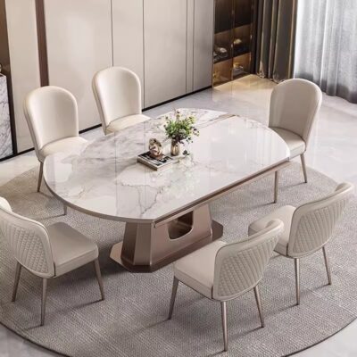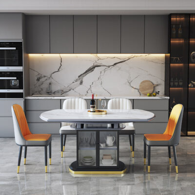 Bàn ăn đá phiến sang trọng nhẹ nhàng hiện đại, xoay, kiểu Ý, có thể thu vào, vuông và tròn, bàn ăn chung cư lớn nhỏ, bàn ăn