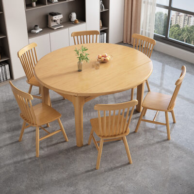Bàn ghế ăn gỗ nguyên khối, bàn ăn tròn hoặc vuông, bàn ăn tròn đế gỗ nguyên khối gấp hình chữ nhật đơn giản