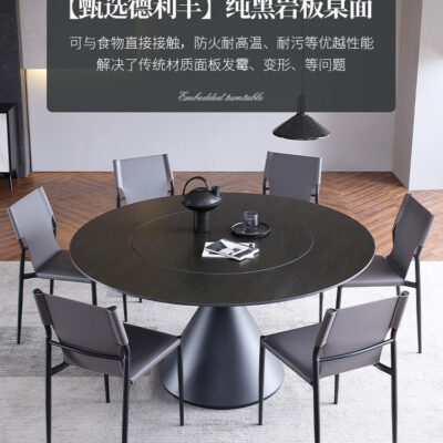 Bàn ăn bằng đá phiến bàn xoay tích hợp thiết kế xoay nhà biệt thự Ý tối giản căn hộ nhỏ bàn ăn tròn màu đen