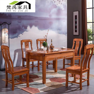 Bàn ghế ăn bằng gỗ hồng mộc kiểu Trung Quốc mới kết hợp bàn ăn bằng gỗ gụ Bàn ăn cổ nội thất tất cả bàn ăn bằng gỗ nguyên khối có thể thu vào