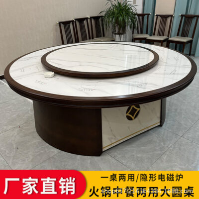Bàn tròn xoay tự động phòng riêng câu lạc bộ khách sạn bàn tròn lớn 16/18/20 người bàn ăn Lẩu xoay tự động có bếp từ