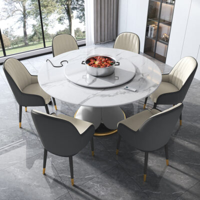 Khách sạn bằng đá cẩm thạch bàn tròn lớn xoay tự động 15 người Bàn lẩu đá phiến 20 người khách sạn bàn ghế kết hợp để sử dụng tại nhà