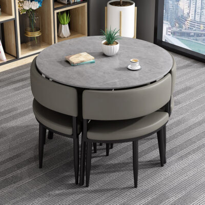 Bàn vuông và tròn đơn giản hiện đại, kết hợp bàn ghế nhẹ nhàng sang trọng, bàn tròn có thể thay đổi, bàn ăn bằng đá phiến có thể thu vào cho căn hộ chung cư nhỏ
