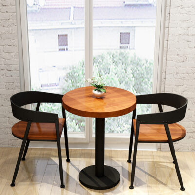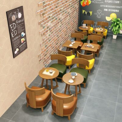 Bàn ghế cafe Bắc Âu, nhà hàng, quán tráng miệng và quán trà sữa khu vực nghỉ ngơi, đàm phán, quầy sách giải trí, bàn ghế gỗ nguyên khối kết hợp