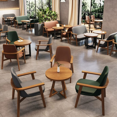 Bàn ghế cafe Bắc Âu, quán tráng miệng, quán trà sữa, quầy sách, quầy đàm phán, nhà hàng tây, tay vịn gỗ nguyên khối, bàn ghế kết hợp