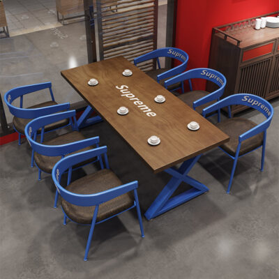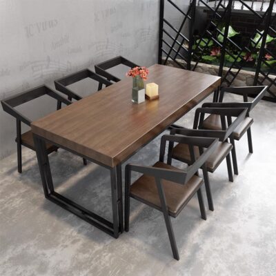 Bàn ăn phong cách cổ điển gỗ nguyên khối bàn ghế cafe kết hợp thịt nướng quán nhà hàng Lẩu thanh phong cách công nghiệp hình chữ nhật bằng gỗ