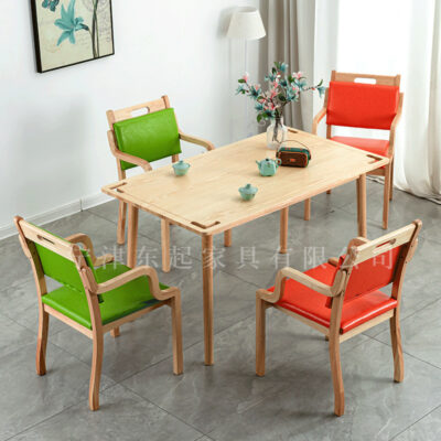 Bàn ghế gỗ nguyên khối cho người già, thích hợp cho người già, bàn ghế ăn cho người già, viện dưỡng lão, cơ sở chăm sóc sức khỏe, ghế người già, bàn ghế ăn sỉ