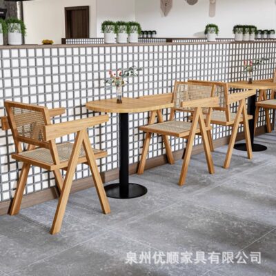 Gỗ nguyên khối mây K ghế quán trà sữa cafe nhà hàng phương tây ăn uống bình dân thanh đàm phán bàn ghế kết hợp phong cách Đông Nam Á