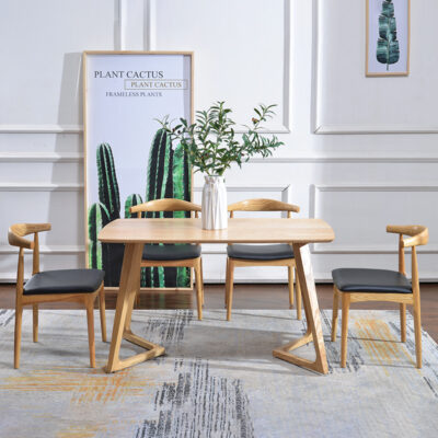Bàn ăn nhà hàng hình chữ nhật cafe hiện đại đơn giản dành cho 4 người và 6 người, kết hợp bàn ghế ăn bằng gỗ nguyên khối kiểu Bắc Âu tiết kiệm