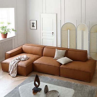 sofa da đầu lớp da bò phòng khách Ý sáng sang trọng hiện đại tối giản sofa khối cao cấp
