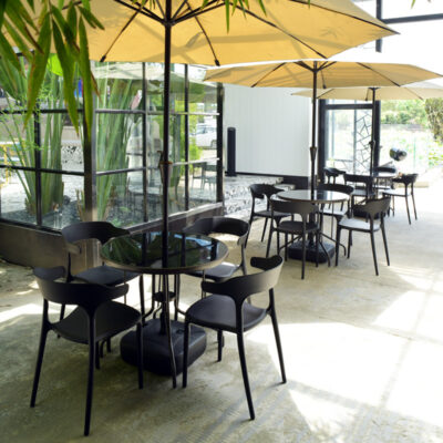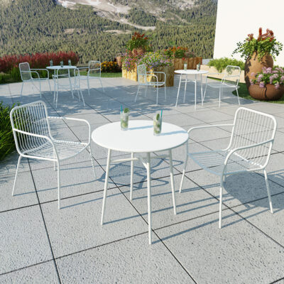 Sân sắt trắng bàn ghế ăn ngoài trời đặt ban công cửa hàng trung tâm mua sắm ngoài trời kem chống nắng quán cà phê ngoài trời