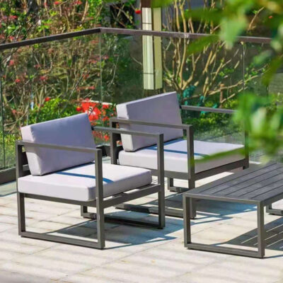 Bàn ghế hợp kim nhôm ngoài trời, sofa sắt rèn ngoài trời, bàn cà phê, người độc thân thư giãn, ghế mây và nội thất biệt thự sân vườn kết hợp