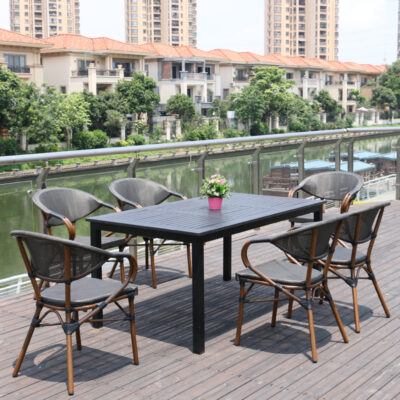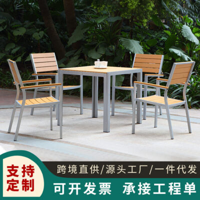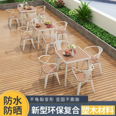 Bàn ghế ngoài trời đơn giản hiện đại sân ngoài trời ban công bàn ăn giải trí quán cà phê đồ nướng cửa hàng bàn ghế gỗ nhựa kết hợp