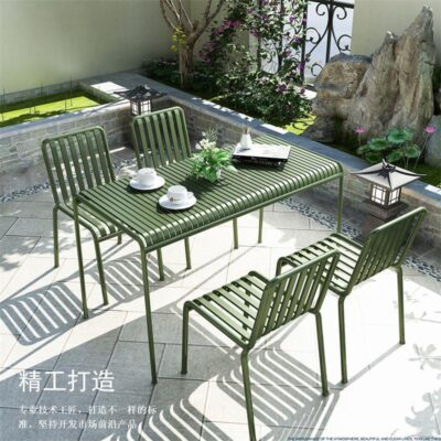 Bàn ghế ngoài trời đơn giản kết hợp sân ngoài trời sắt chống nước bàn dài Internet phổ biến quán cà phê bàn ăn ngoài trời