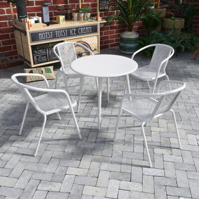 Sân ban công bàn ghế nhỏ quán trà sữa cafe trắng ngoài trời bàn tròn ngoài trời chống nắng kết hợp bàn ghế giải trí