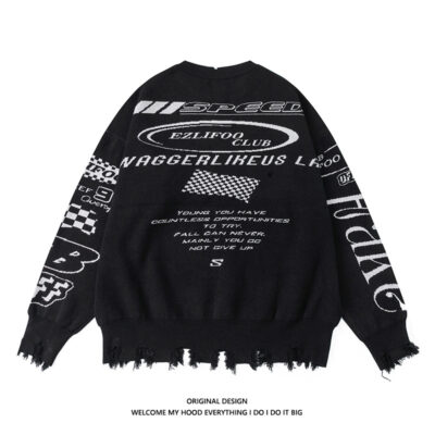 Triều Thương Hiệu Retro Nguyên Edge Đua Phù Hợp Với Thư Dạ Nỉ Áo Len Nam Mỹ Dạo Phố Hiphop Cặp Đôi Áo Len
