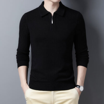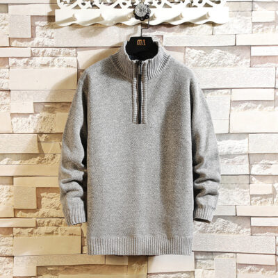 Xu hướng mùa đông áo len nam có ve áo giản dị dành cho người trung niên và thanh niên áo chui đầu dài tay áo len nam Hàn Quốc có khóa kéo