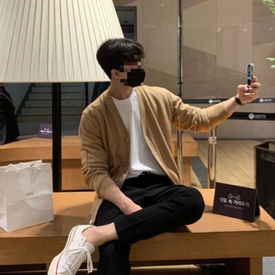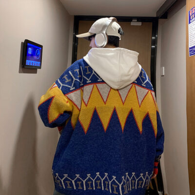 Xu hướng thu đông 2022 phong cách Hồng Kông dáng rộng cardigan cổ chữ V nút áo len nam
