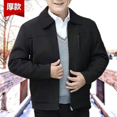Áo khoác ông bố áo khoác mùa đông cộng với nhung dày áo khoác nam trung niên và người già áo khoác len dài trung niên nam mùa thu xuyên biên giới