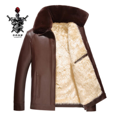 Áo khoác da nam mới 2022 dành cho trung niên và cao tuổi áo khoác da nam tích hợp lông thú, bán hàng trực tiếp tại xưởng, bán buôn sông hồ