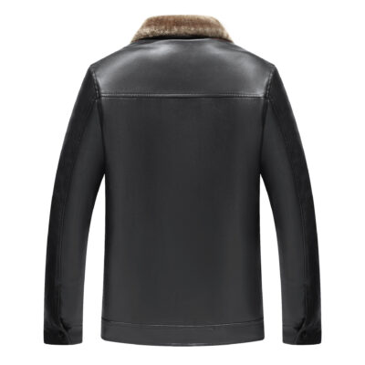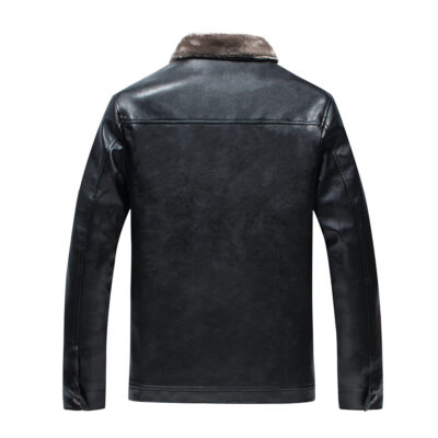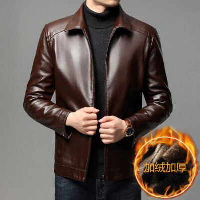 Mùa thu và mùa đông mới áo khoác da nam có ve áo bằng da pu cộng với nhung dày dành cho người trung niên và người lớn tuổi của bố quần áo áo khoác nam