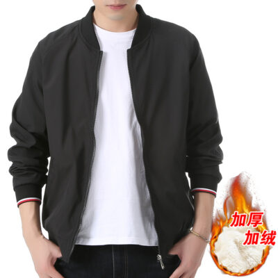 Áo khoác nam giản dị áo khoác mùa xuân và mùa thu quần áo nam trung niên kích thước lớn thể thao đồng phục bóng chày cộng với quần áo lông cừu của bố