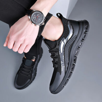 Giày Nam 2023 Mới Nam Mùa Hè Thoáng Khí Tất Cả Các Trận Đấu Thường Chạy Lưới Khử Mùi Tăng Chiều Cao Màu Đen Thể Thao Triều Giày