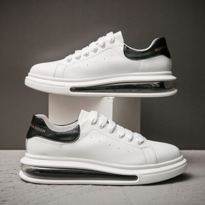 Giày nam da đế dày mới Giày McQueen nhỏ màu trắng thoáng khí cho nam giày ván lót giày đế cổ điển giày thường tăng chiều cao