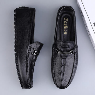 Giày đậu Hà Lan họa tiết cá sấu mới xuyên biên giới giày lười lái xe cỡ lớn Giày thường Anh giày nam da bò thật