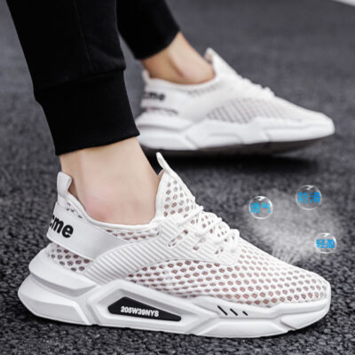 Giày Nam Mùa Hè Thoáng Khí Lưới Mỏng Rỗng Thể Thao Lưới Chống Trơn Giày Lưới Nhỏ Màu Trắng Giày Mùa Hè Nhẹ Hợp Thời Trang